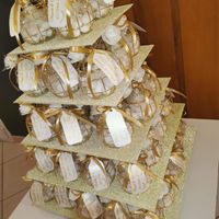 Voici mes dragées finis (bon il faut qu’on refasse les étiquettes vu que la date n’est plus bonne) point mariage sur le thème blanc et doré qu’en pensez-vous ?