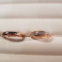Nous avons choisi nos alliances et elles sont enfin arrivĂ©es en bijouterie, nous devons y retourner prochainement pour les essayer (ĂȘtre sĂ»r que la taille commandĂ©e correspond) et donner notre choix de gravure... comme vous le constarez, nous avons optĂ© pour de l'or rose ( peu commun bien que cela revienne a la mode, les modĂšles dispo restent restreints en bijouterie), celle de mon chĂ©ri est trĂšs simple mais en meme temps Ă©lĂ©gante par son arrondi et sa brillance, la mienne reprĂ©sente l'amour d'hier, d'aujourd'hui et de demain, au travers les 3anneaux entrelacĂ©s (la symbolique m'a plu de suite ! Lol) bref elles sont Ă notre image, simples, Ă©lĂ©gantes, sans pour autant ĂȘtre classiques, elles sortent de l'ordinaire. et pour la gravure, nous aimerions en faire autant... mettre la date me parait trop "commun" ... nos initiales peut-ĂȘtre, un mot d'amour certainement... nous voudrions un peu plus