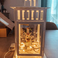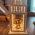 L’idée m’est alors venue, puisque les bougies sont interdites dans ma salle, d’utiliser mes animaux en centre de table, dans une lanterne, avec des leds lumineuses. Ça permettrait de les mettre davantage en valeur & de les protéger car la polymère est fragile. J’ai donc acheté deux lanternes différentes pour tester, en sachant que bien sur les fleurs/feuillages s’ajouteront sur Le tour le jour J & que mon papa qui travaille dans le plastique pourra me faire un socle pour surélever un peu la figurine, voir un socle pour surélever la lanterne.