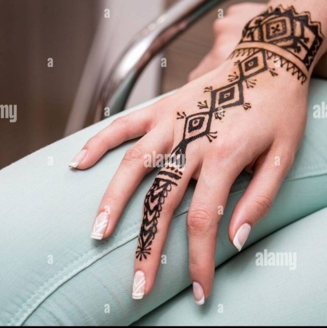Mon futur mari est marocain, et c'est une tradition chez eux que les femmes fassent du henné la veille ou quelques jours avant le mariage (je précise qu'on ne fait absolument rien de religieux et que ça n'a pas attrait à la religion, c'est simplement une coutume). Sa soeur m'a donc proposé de le faire la veille en me précisant que je n'étais pas obligée d'accepter, mais je me suis dit que si je l'épouse lui, j'épouse également ses traditions sachant qu'on ne fait déjà pas de mariage religieux même si ça ne lui aurait pas déplu. Donc j'ai accepté et je voulais un peu vis avis sur deux exemples différents, sachant que je n'en ferait qu'à la main droite et aux pieds car ça se voit moins et je préfère quand ça reste plutôt simple. Un des deux exemples qui vous semblerait bien ?