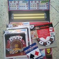 Et voilà premier colis reçu Alors Boîte machine à sous (URNE) 43x48x25 Guirlande poker/casino 8pavillons 20cmx20cm 4m Suspensions casinos 12 décos 61cm de haut Ruban casino 6mx7cm5 Coût total 35E...