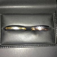 Après toutes nos péripéties par rapport à nos alliances je peux enfin dire qu’elles sont arrivées !! Comme promis je vous mets la photo 😉 Monsieur : or jaune & blanc Madame : or blanc & rose...