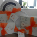 Voici mes premiers essaies de contenant a dragées mon code couleur est ivoire et orange...