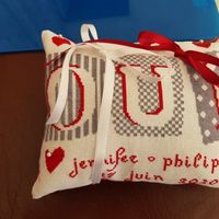 Salut la comu ! À ma grande surprise la maman de ma Best F. Ma conçu mon coussin d'alliance.... Je le trouve tellement extra ! Quel beau cadeau