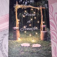 Nous nous en avions fait notre faire part , du cout nous en avons fais aussi un coin photo pour nos invités ( manque juste un rouleau d’herbe pour mettre au sol )