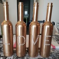 Coucou à toutes et à tous 😊 Voilà aujourd'hui essais centre de table. Alors la bouteille lumineuse, le pot en verre avec dentelle et ruban pêche et l'autre pot que dentelle il y aura les compositions...