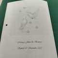 Voici mes menus de mariage ! entièrement designés et fait a la main par moi... voila! petite explication: on voit bacchus en première page, dieu du vin et des banquets avec la phrase un peu...