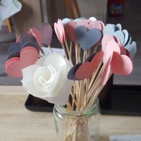 Bonjour à toutes et tous, Avancement de ma decoration ce matin avec la création de pic coeur et une rose en filtre à café. Qu'en pensez vous?