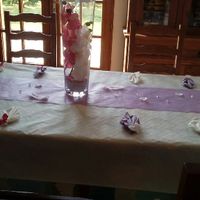 Petite deco table avec orchidees. Tout n'est pas mis. Qu'en pensez vous pour l'instant. Pour les orchidées ce sont des fzusses. Dois je remplir mes vzses d'eau ou laisser comme ça