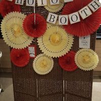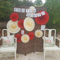 Bonsoir à toutes, je me suis remise un peu a la déco et j'ai essayé mon mur photobooth. Qu'en pensez Vous? Sachant qu'il y aura aussi 2 chaises de chaque côté avec un coussin rouge.