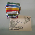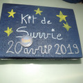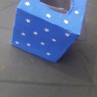 Et voilà le premier prototype de notre contenant a dragée est fait je dois changer la ficelle et broder la date dessus .L'idée est de refaire la bourse du marchand de sable vu que le thème est la nuit...