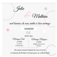 1 ère ébauche du faire part.. vous en pensez quoi? Thème bulles et couleurs rose pâle, gris et blanc