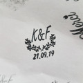 Coucou ! Si vite la date du mariage bookée, voici le tampon personnalisé commandé !!! Ça ira plus vite sur les enveloppes et les étiquettes remerciements du cadeau invité ! Hâte de le recevoir pour...