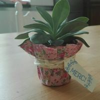 Voilà, une petite plante, du liberty, du sisa, une étiquette, un tampon et de l'encre. Comment vous la trouvez? Au dos de l'étiquette je pensais écrire des petits messages, type «emportes moi», «fais...