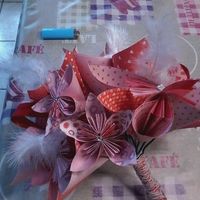 Coucou alors je fais pas de lancer de bouquet mais je vais l'offrir à à soeur voilà mon bouquet en origami qu'est ce que vous en pensez? Bouquet