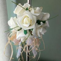Re à toutes! Voilà notre décoration pour l'église... Un par rangées pour les 2 premiers rangs, puis en quinconce sur le reste... On ne veut pas trop en faire... On les enlève après la cérémonie et ça...