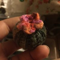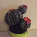 Coucou. Je viens vous présenter mes cadeaux pour les invités. Ce sont des cactus en laine que j’ai réalisé au crochet. Il y en a trois différents, car un modèle pour les hommes, un pour les femmes et...