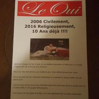 Bonjour, Nous sommes mariés civilement le 12 Août 2006 et pour nos 10 ans nous nous marions religieusement le 13 Août 2016.