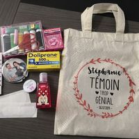 Voilà, mon kit de témoin parfait et demoiselle de choc commence à prendre forme trop. Contente il me reste encore quelques gadgets à ajouter. -> kit de couture, gel anti bactérien disney,...