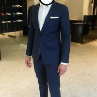 Voilà, nous avons déniché le costume de mon homme. Nous voulions un costume clair, écru ou beige et finalement nous nous sommes laissés convaincre par un bleu lumineux qui fait ressortir ses yeux...