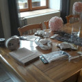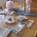 Voilà mes essais de table ... bon ça demande un peu d imagination car :mes tables seront rondes , mes assiettes seront plates et plus grandes , et de vrais fleurs ... Ah oui et mon pochon de dragée en...