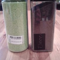 Pendant la cérémonie laique nous allons faire celle du sable Je vous met les photos du sable et du contenant final Sables vert et marron Contenant a sable