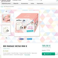 Coucou les filles!!!J'ai trouvé sur le site de fujifilm des box mariages vous en pensez quoi?? Après je ne sais pas trop comment présenter ça aux invités!! Si je charge quelqu'un de faire les photos...