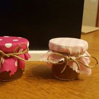 Voila après une après-midi travaux manuel, nous avons finit nos 100 pots de confitures maison. Cadeaux invites pour les femmes. (Les hommes auront des tubes à essai avec des m&m's) La confiture...