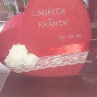 Cc les filles, j'ai encore besoin de vous. Je ne veux pas du traditionnel coussin d'alliance alors j'ai opté pour la boîte de rose mais j'aimerais la personnalisée, voici deux essais faitesour les 2...
