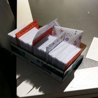 Et voilà une bonne chose de faite ! Faire part reçus, pliés, mis sous enveloppe et organisés selon la distribution (à envoyer ou à donner directement).Je suis bien contente. Il n'y a plus qu'à...