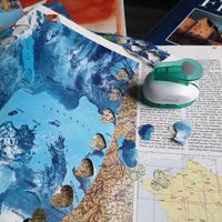 Hello! Petite idée déco pour le thème voyage de notre mariage ! Je fais des coeurs avec differentes cartes du monde !