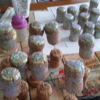 Voilà c'est mon dyi du moment pailleté des bouchon de champagne pour faire mes marques places j'en ai déjà fait 60 environ il m'en manque une petite vingtaine et il faut que je fasse toute mes roses...