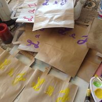 Cette aprèm fut un atelier peinture!!!Nos initiales sur les welcome bag... Puis je me suis collée au panneau de la piste de danse mais il y a encore du boulot pour que le texte plus joli et super...