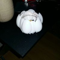 Photophore réalisé avec un pot de yaourt en verre et des cuillères en plastiques. Résultat assez sympa qui forme une fleur. Photo dans le jour et dans le noir. Je joint aussi le tuto