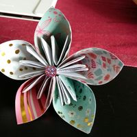 Je viens de faire des essais d'origami fleur et grue Pour la fleur faudra que je teste avec de la colle liquide car la colle en stick ça colle pas bien Va y avoir du boulot
