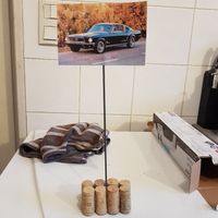 Coucou a toutes Voilà le 1er éssai de la déco de table chéri vient de coller les bouchons voir ce que sa donne 😊On pense raccourcir les pics que sa face un peu moins haut et rajouter de la corde...