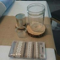 Voilà mon idée pour nos centres de table. 16 tables avec 12 bouquets en tout disposés à la jointure des tables ( tables en E), dans le bocal transparent. Dans le tout petit, une bougie Led et dans la...