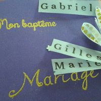 Bonsoir à tous !Une copine est venue m'aider à organiser la décoration de notre week end avec Mariage (couleurs violet et jaune) le samedi et Baptême de notre fils le diamnche ( couleur bleu)D'abord...