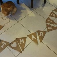 Coucou les filles!! J'ai reçue aujourd'hui ma guirlande de fanions en jute "Just married" commandée sur Amazon. Elle est top je suis contente Je vais l'accrocher au mur entre 2 fenêtres. Notre table...