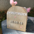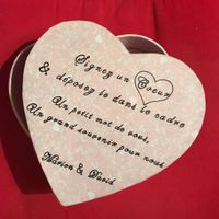 Bonsoir tout le monde. Après un après midi de travail, j’ai terminé ma boite qui contiendra les petits cœur en bois pour le cadre « livre » d’or. Qu’en pensez vous ?