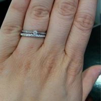Bonjour ! Aujourd'hui nous sommes allés à la bijouterie et là, LA bague ! Je l'essaye, bonne taille, très jolie avec ma bague de fiançailles ^^ c'était surtout ça le défis, la difficulté de trouver...