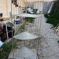 Petit DIY qui a quand même duré deux jours... pour faire 2 couches 😂😂 A la base la structure est noire et les plateaux en osier donc marrons ! J’ai tout bombé en or. Je kiffe trop ! Ça va me servir à...