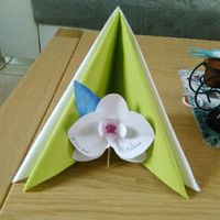 Bonjour voici la future disposition des serviettes avec le porte noms orchidée fait main... Vous en pensez quoi ? Les couleurs ne sont pas bonnes car plus d'encre porte nom orchidee
