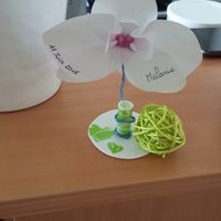 Porte nom Brouillon porte nom Notre thème est blanc et vert anis. Et il y aura des orchidées... Du coup j'ai fait un essai de porte nom... Vous en pensez quoi ? Sachant que ça sera mieux fait c'est un...
