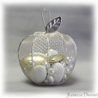 Apres beaucoup de recherche nous avons trouvés cette pomme pour rappeler nos pommes d'amour marque-place. Vous en pensez quoi? des petites idées pour les customiser bordeaux et ivoire?...