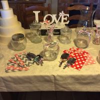 Bonsoir à toute Aujourd'hui j'ai un peu avancé dans ma déco... Et voici mon essai de Candy Bar : (Evidemment ça sera plus joli avec les bonbons ) Et j'ai fait une petite guirlande de fanions qui sera...