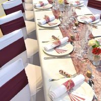 Bonjour la commu, Nous avons décidé que nos couleurs seraient rouge/Bordeaux et blanc, vous avez des sujétions à me faire, je m'imagine une nappe blanche, un chemin de table rouge avec des assiettes...
