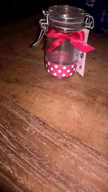Coucou tout le monde après le succés de la déco de nos menus (merci pour vos compliments ) je viens de faire un test pour nos contenants dragées dragées on a choisi des dragées coeurs rouges et...