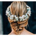 J'hésite entre la tresse bohème droite ou sur le côté C'est plutôt simple et en même temps la couronne de fleurs va apporter sa touche champêtre à la coiffure Une inspiration Et... Ma couronne de...