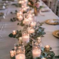Je remplacerai l'eucalyptus par du lierre naturel 👰 Je rajouterai des fleurs de par et d'autre 🌼 Je vois bien des lanternes aussi au centre des tables 😍